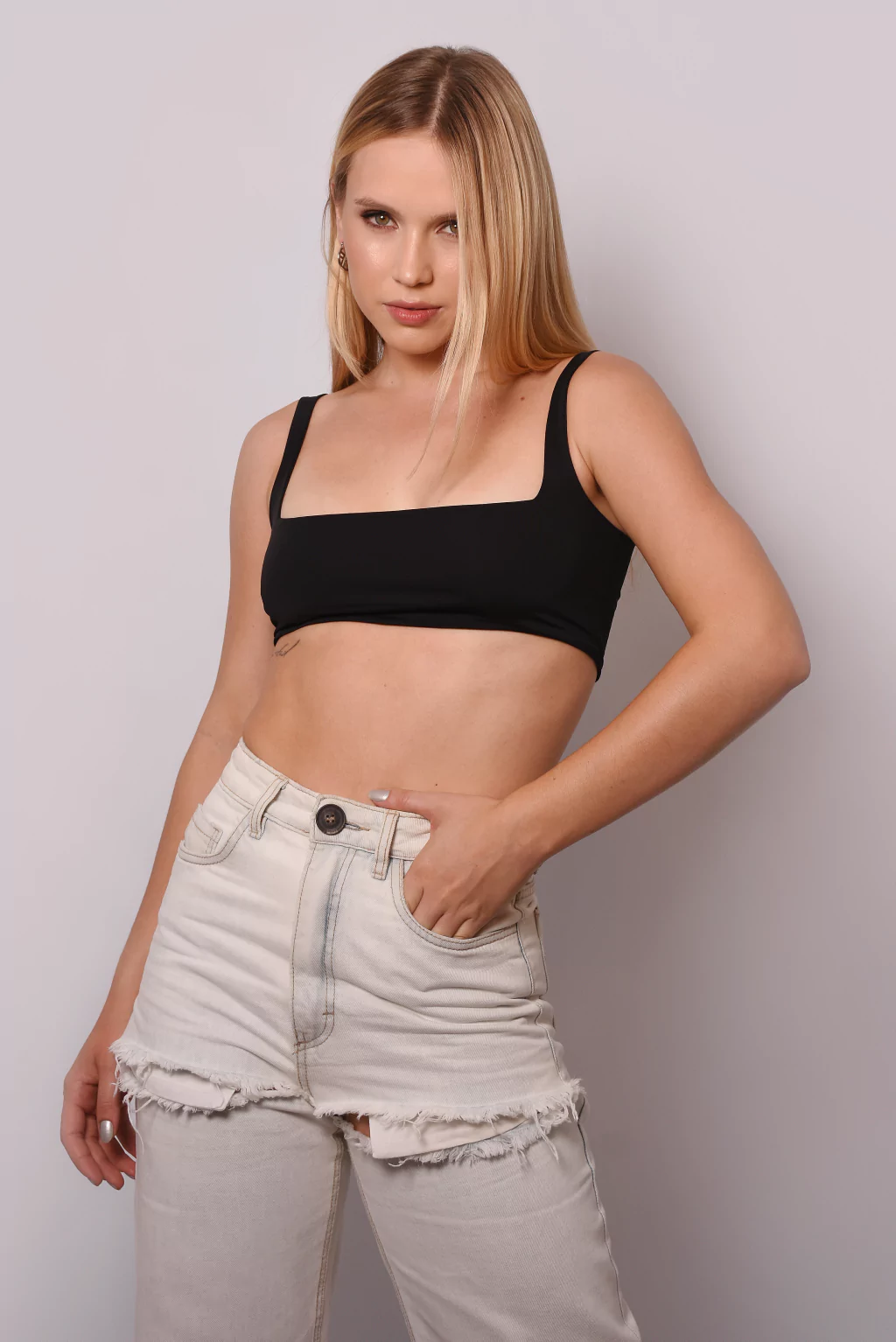 Top Gisele com modelagem exclusiva! Decote reto - quadradinho - alças finas, shape ajustado ao corpo e comprimento abaixo do busto. Peça com tecido duplo e costura embutida, proporcionando maior sustentação. ♥